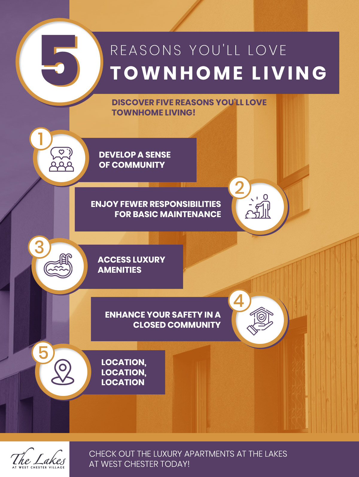 If any of the above benefits of townhome life are appealing to you, we urge you to come to visit us at our West Chester townhome community today. At The Lakes at West Chester Village, we provide our tenants with state-of-the-art living spaces, world-class amenities, and a fun and safe community.